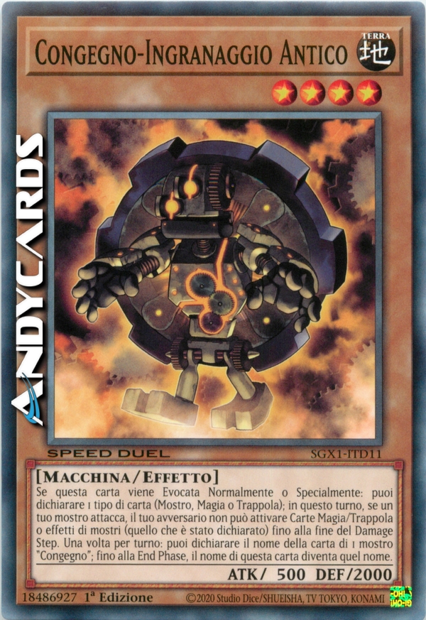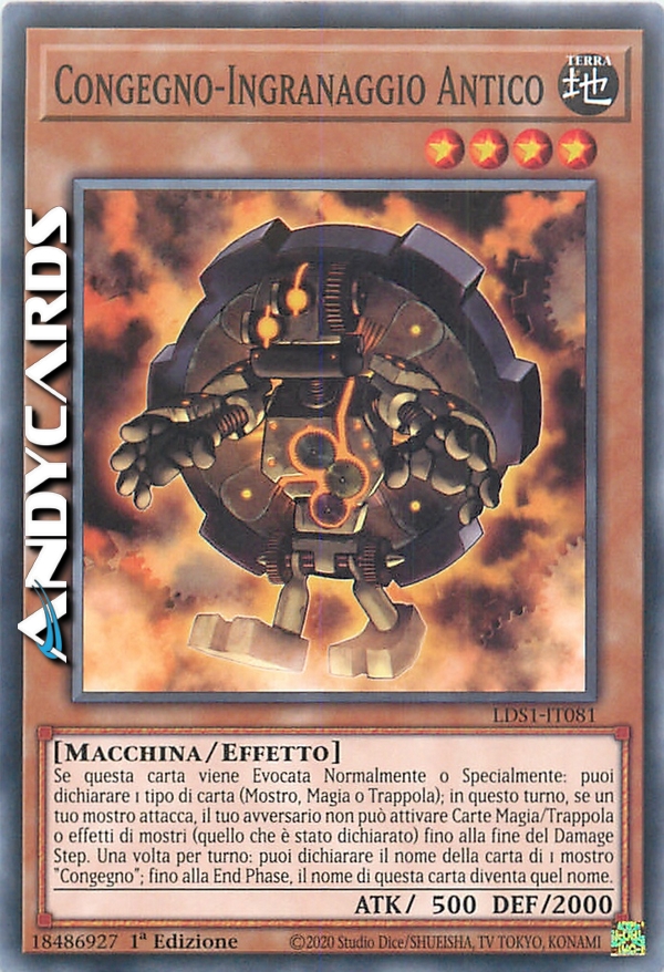 Se questa carta viene Evocata Normalmente o Specialmente: puoi dichiarare 1 tipo di carta (Mostro, Magia o Trappola); in questo turno, se un mostro che controlli attacca, le Carte Magia, Carte Trappola o gli effetti dei mostri (quello che è stato dichiarato) del tuo avversario non possono essere attivati fino alla fine del Damage Step. Una volta per turno: puoi dichiarare il nome della carta di 1 mostro "Congegno"; fino alla End Phase, il nome di questa carta diventa quel nome.