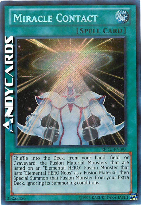Mischia nel Deck, dalla tua mano, Terreno o Cimitero, i Materiali da Fusione che vengono menzionati su un Mostro Fusione "EROE Elementale" che menziona "Neos EROE Elementale" come materiale, poi Evoca Specialmente quel Mostro Fusione dal tuo Extra Deck, ignorando le sue condizioni di Evocazione.