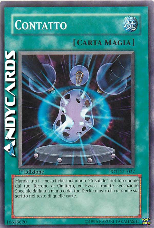 Manda tutti i mostri che includono "Crisalide" nel loro nome dal tuo Terreno al Cimitero, ed Evoca tramite Evocazione Speciale dalla tua mano o dal tuo Deck 1 mostro il cui nome sia scitto nel testo di quelle carte.
