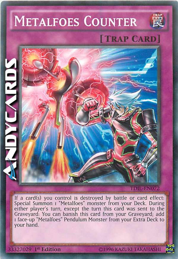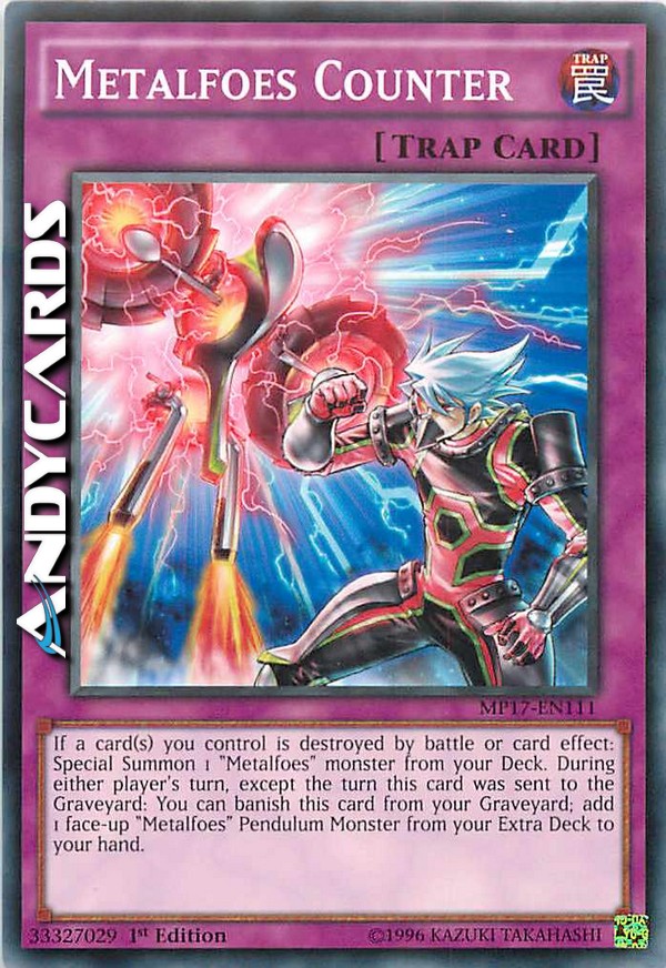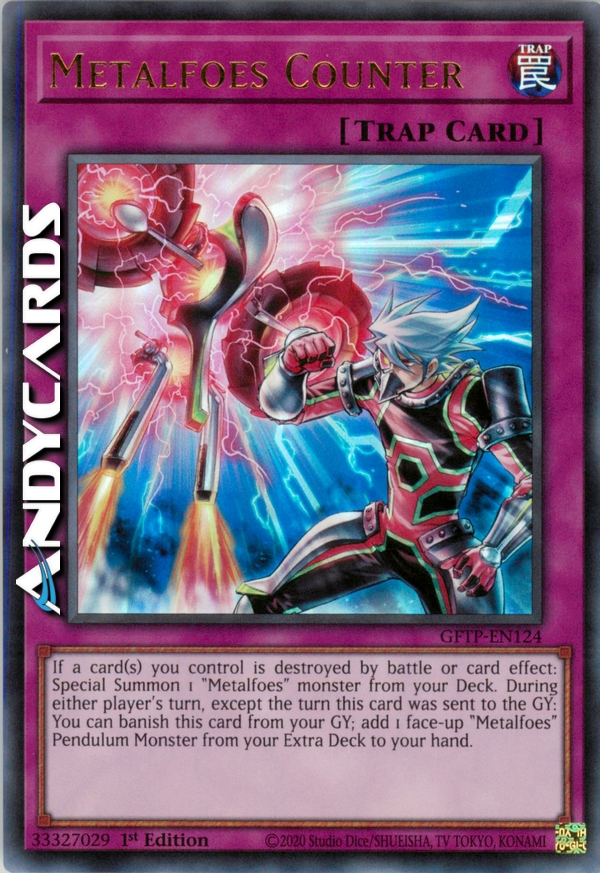 If a card(s) you control is destroyed by battle or card effect: Special Summon 1 "Metalfoes" monster from your Deck. During either player's turn, except the turn this card was sent to the Graveyard: You can banish this card from your Graveyard; add1 face-up "Metalfoes" Pendulum Monster from your Extra Deck to your hand.