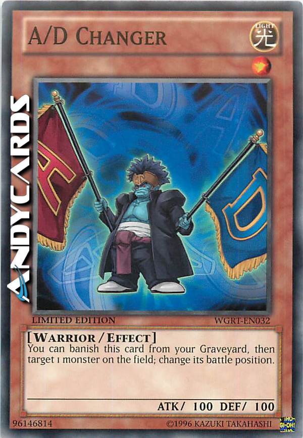 Puoi rimuovere dal gioco questa carta nel tuo Cimitero per scegliere 1 mostro sul Terreno. Cambia la sua posizione.