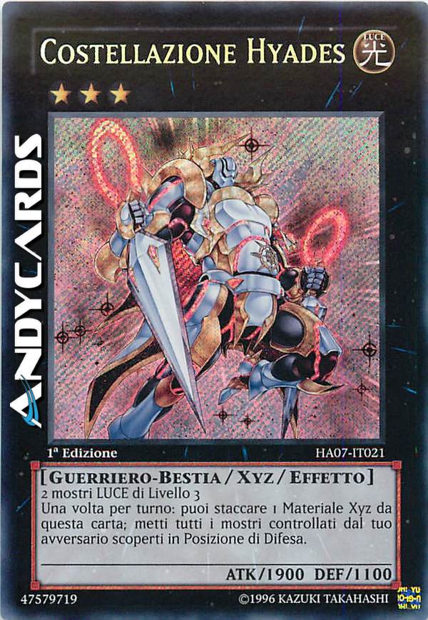 Una volta per turno: puoi staccare 1 Materiale Xyz da questa carta; metti tutti i mostri controllati dal tuo avversario scoperti in Posizione di Difesa.