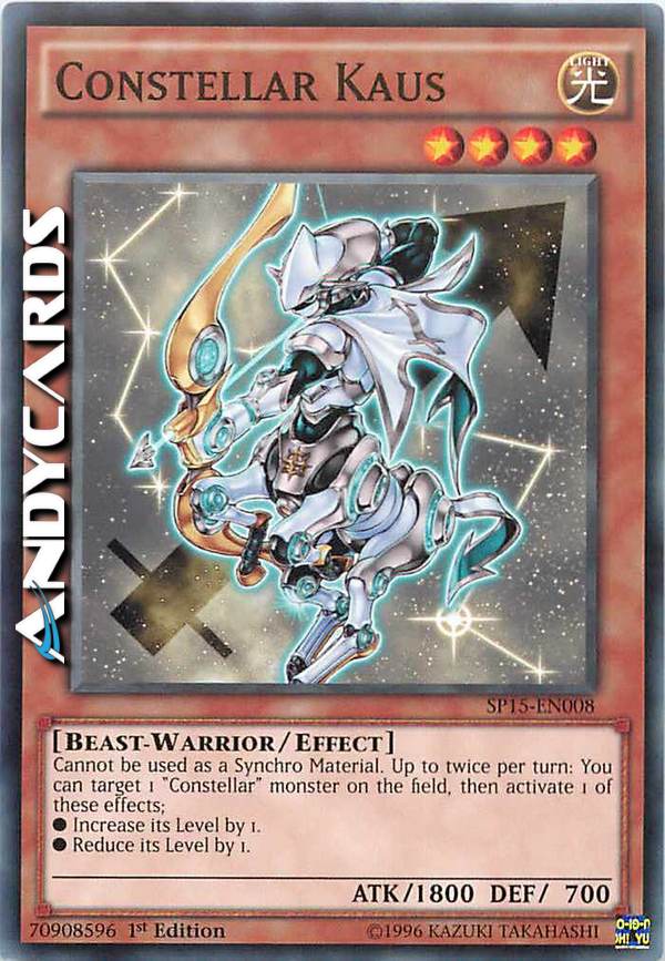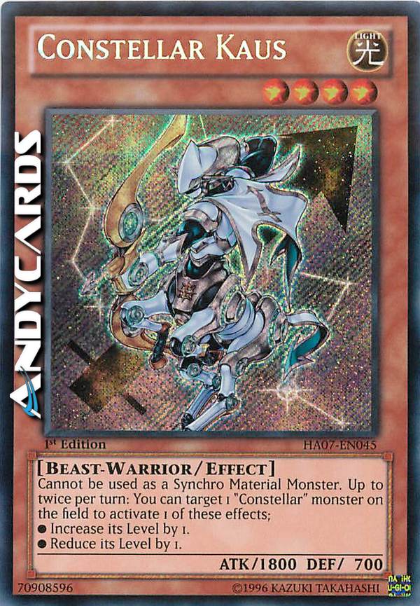 Non può essere utilizzato come Mostro Materiale Synchro. Fino a due volte per turno: puoi scegliere come bersaglio 1 mostro "Costellazione" sul Terreno per attivare 1 di questi effetti; ?Aumenta il suo Livello di 1. ?Diminuisci il suo Livello di 1.