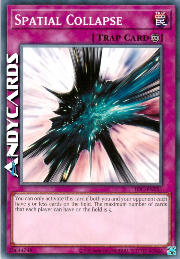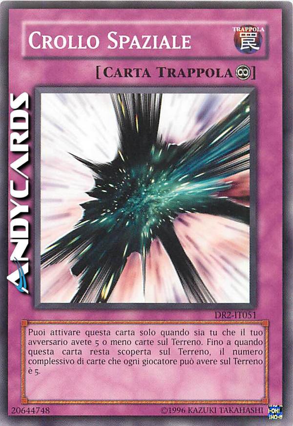 Puoi attivare questa carta solo quando sia tu che il tuo avversario avete 5 o meno carte sul Terreno. Fino a quando questa carta resta scoperta sul Terreno, il numero complessivo di carte che ogni giocatore può avere sul Terreno è 5.