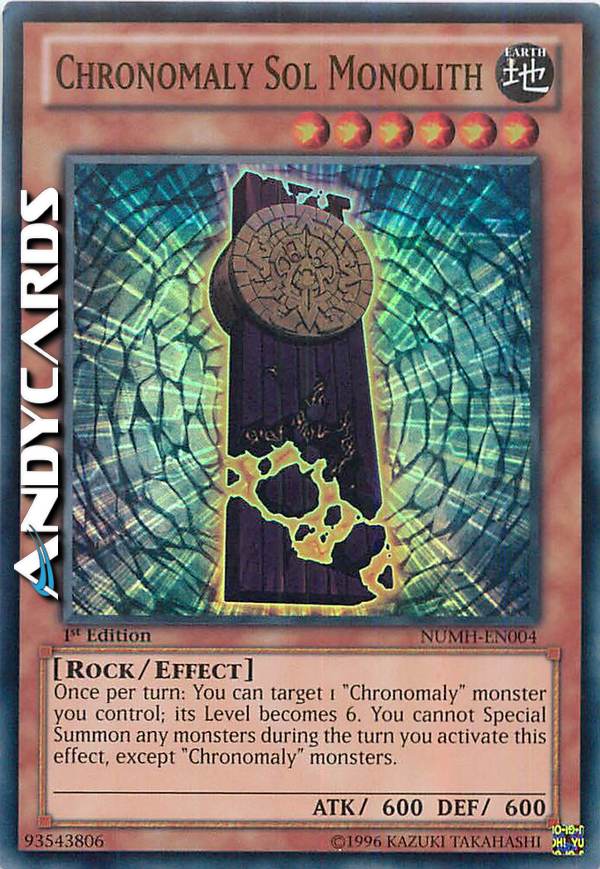 Once per turn: You can target 1 "Chronomaly" monster you control; its Level becomes 6. You cannot Special Summon any monsters during the turn you activate this effect, except "Chronomaly" monsters.