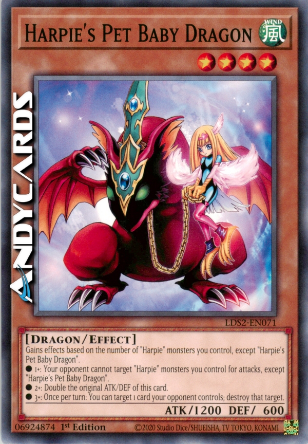 This card accumulates effects based on the number of "Harpie" monsters you control (other than "Harpie's Pet Baby Dragon" and "Harpie’s Brother"). 1: Your opponent cannot select "Harpie" monsters as attack targets (other than "Harpie's Pet Baby Dragon" and "Harpie’s Brother"). 2: Double the original ATK and DEF of this card. 3: Once per turn, you can destroy 1 card your opponent controls.