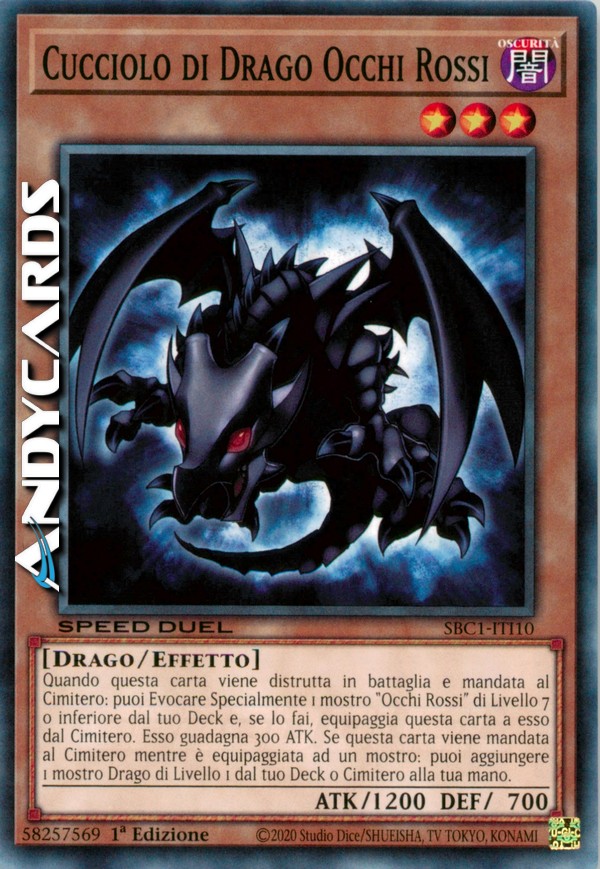 Quando questa carta viene distrutta in battaglia e mandata al Cimitero: puoi Evocare Specialmente 1 mostro "Occhi Rossi" di Livello 7 o inferiore dal tuo Deck e, se lo fai, equipaggia questa carta a esso dal Cimitero. Esso guadagna 300 ATK. Se questa carta viene mandata al Cimitero mentre è equipaggiata ad un mostro: puoi aggiungere 1 mostro Drago di Livello 1 dal tuo Deck o Cimitero alla tua mano.
