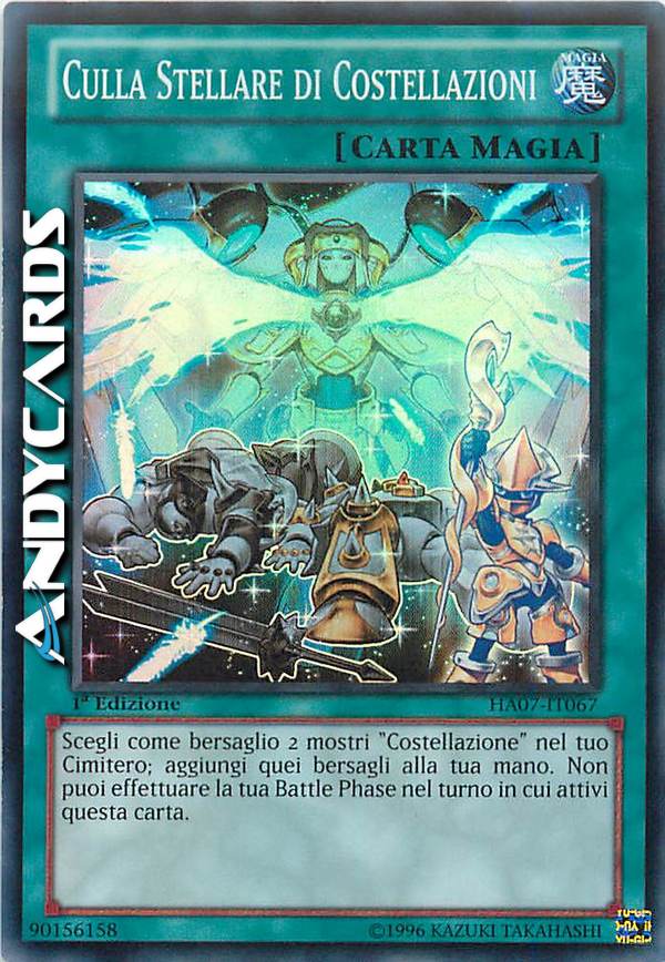 Scegli come bersaglio 2 mostri "Costellazione" nel tuo Cimitero; aggiungi quei bersagli alla tua mano. Non puoi effettuare la tua Battle Phase nel turno in cui attivi questa carta.