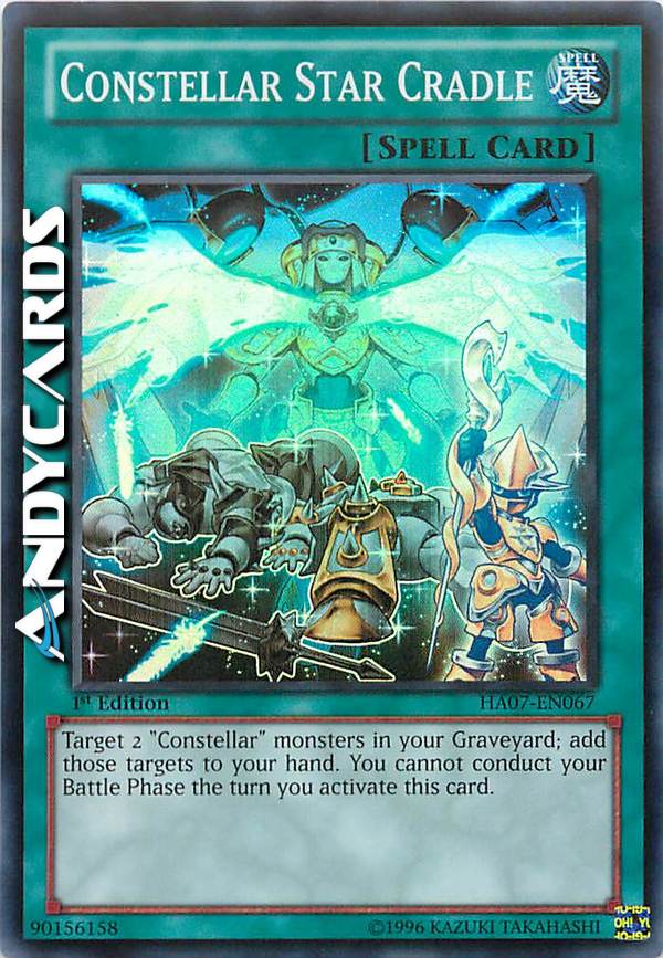 Target 2 "Constellar" monsters in your Graveyard; add those targets to your hand. You cannot conduct your Battle Phase the turn you activate this card.