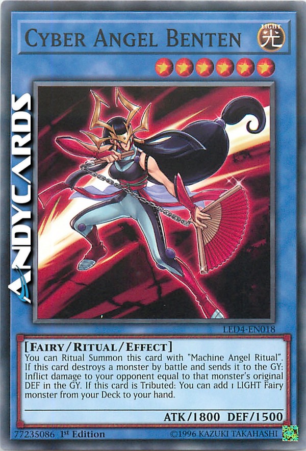 Puoi Evocare tramite Rituale questa carta con "Rituale dell'Angelo Macchina". Se questa carta distrugge un mostro in battaglia e lo manda al Cimitero: infliggi al tuo avversario danno pari al DEF originale nel Cimitero di quel mostro. Se questa carta viene offerta come Tributo: puoi aggiungere 1 mostro LUCE di Tipo Fata dal tuo Deck alla tua mano.