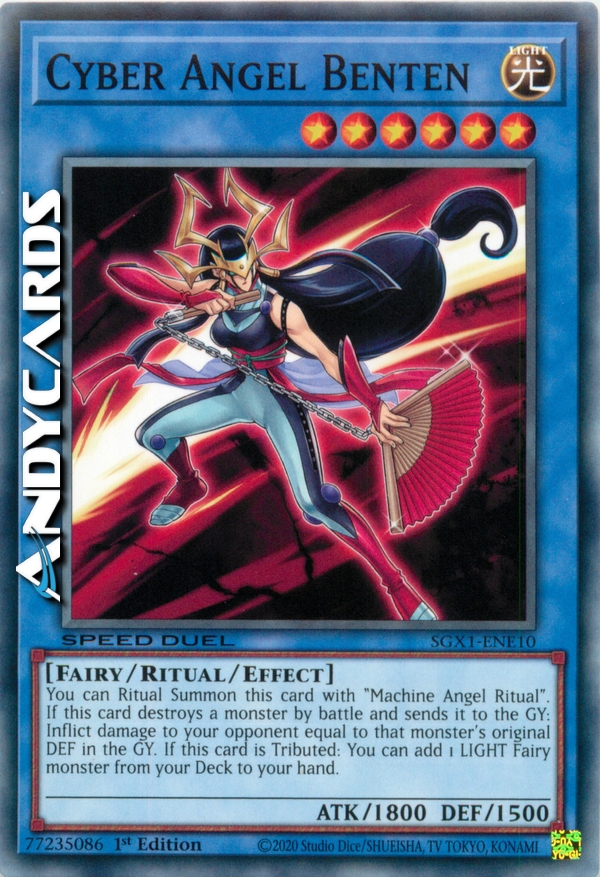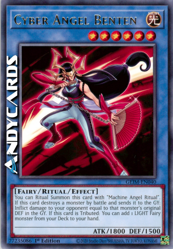 You can Ritual Summon this card with "Machine Angel Ritual". If this card destroys a monster by battle and sends it to the GY: Inflict damage to your opponent equal to that monster's original DEF in the GY. If this card is Tributed: You can add 1 LIGHT Fairy monster from your Deck to your hand.