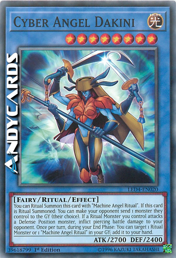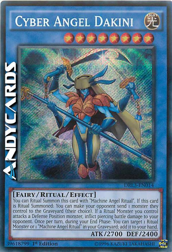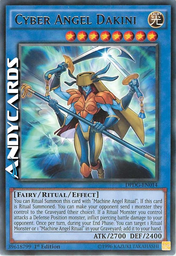 You can Ritual Summon this card with "Machine Angel Ritual". If this card is Ritual Summoned: You can make your opponent send 1 monster they control to the Graveyard (their choice). If a Ritual Monster you control attacks a Defense Position monster, inflict piercing battle damage to your opponent. Once per turn, during your End Phase: You can target 1 Ritual Monster or 1 "Machine Angel Ritual" in your Graveyard; add it to your hand.