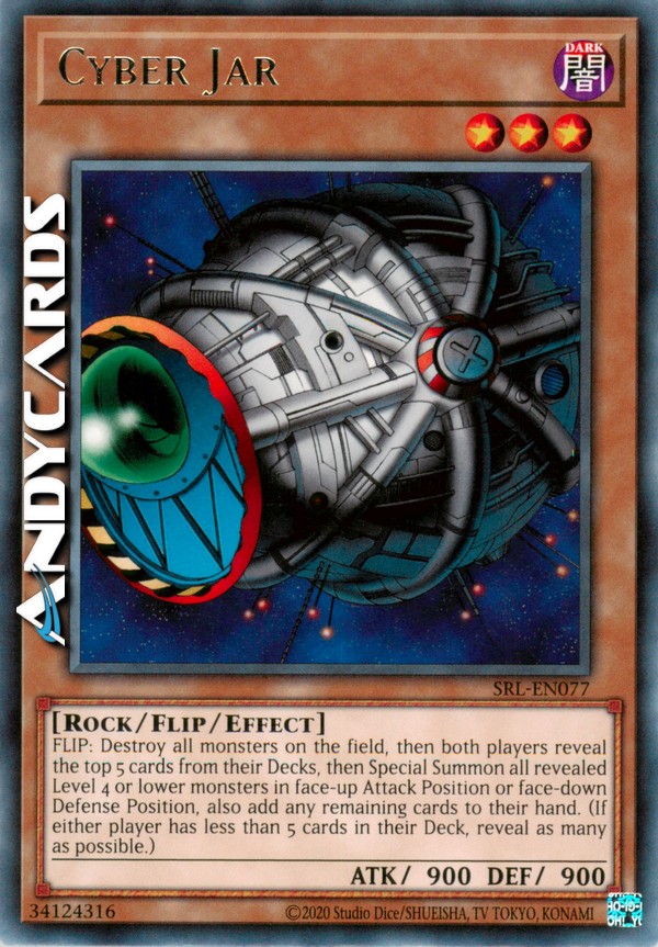 SCOPRI: Distruggi tutti i Mostri sul Terreno (incluso questo). Ciascuno dei giocatori prende (non pesca) 5 carte dalla cima dei rispettivi Decks e le mostra all'avversario. Tra queste, le Carte Mostro di Livello 4 o inferiore vengono immediatamente evocate tramite Evocazione Speciale sul Terreno, scoperte in Posizione di Attacco o coperte in Posizione di Difesa. Il resto delle carte prese vanno nelle mani dei giocatori.