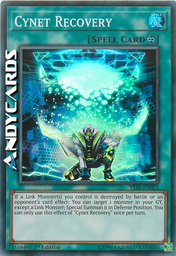 If a Link Monster(s) you control is destroyed by battle or an opponent's card effect: You can target 1 monster in your GY, except a Link Monster; Special Summon it in Defense Position. You can only use this effect of "Cynet Recovery" once per turn.