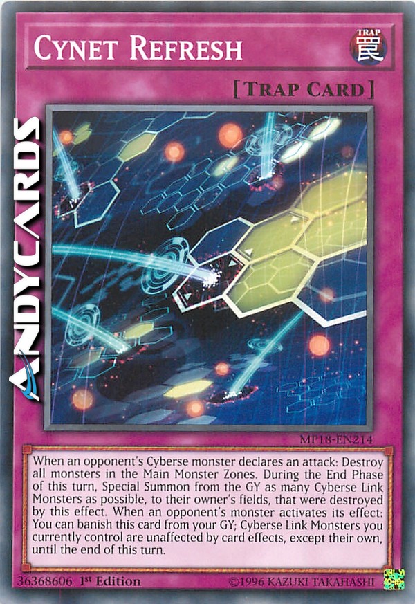 When an opponent's Cyberse monster declares an attack: Destroy as many monsters in the Main Monster Zones as possible, and if you do, during the End Phase of this turn, Special Summon as many Cyberse Link Monsters among those destroyed monsters in the GY as possible to their owner's fields. When your opponent activates a monster effect: You can banish this card from your GY; Cyberse Link Monsters you control are unaffected by card effects (except their own) until the end of this turn.