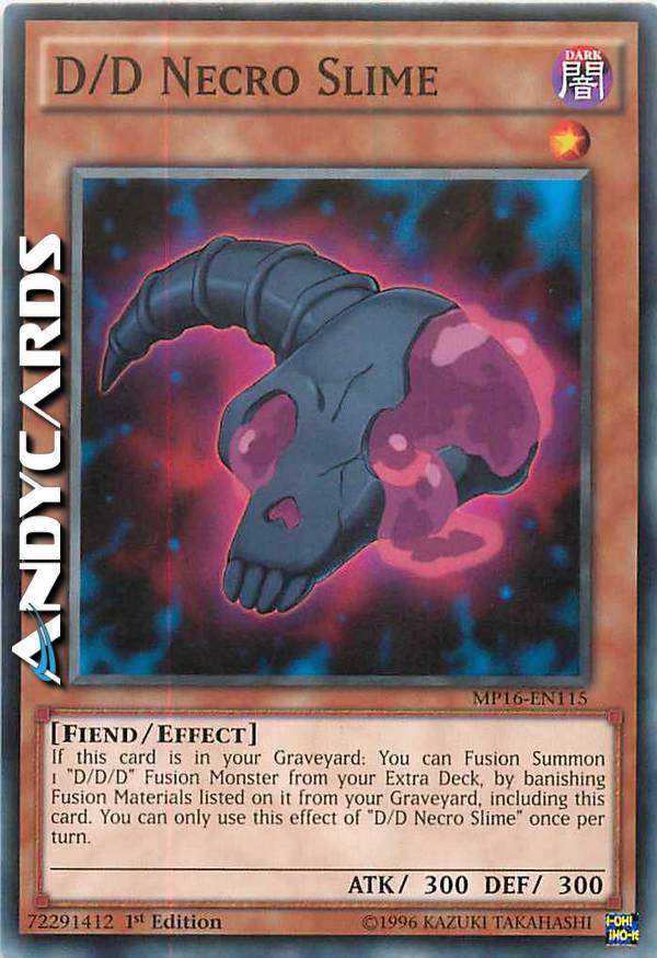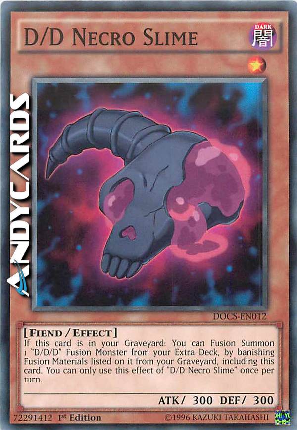 If this card is in your Graveyard: You can Fusion Summon 1 "D/D/D" Fusion Monster from your Extra Deck, by banishing Fusion Materials listed on it from your Graveyard, including this card. You can only use this effect of "D/D Necro Slime" once per turn.
