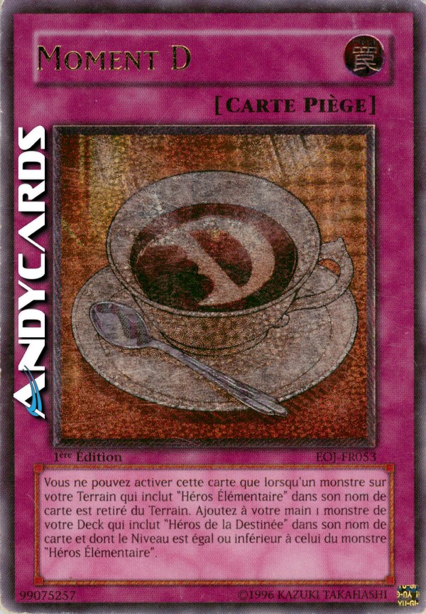 Quando un mostro "EROE Elementale" che controlli lascia il Terreno: aggiungi dal tuo Deck alla tua mano 1 mostro "EROE del Destino" il cui Livello sia pari o inferiore al Livello di quel mostro "EROE Elementale".