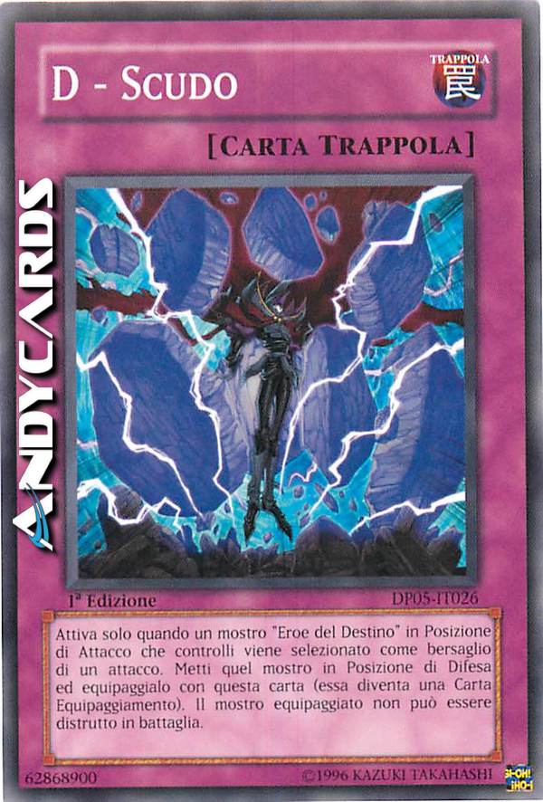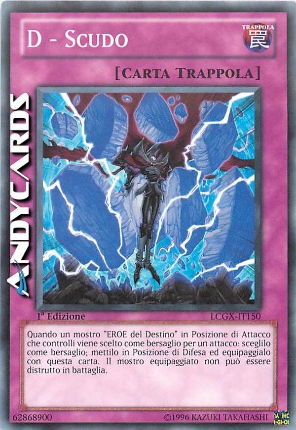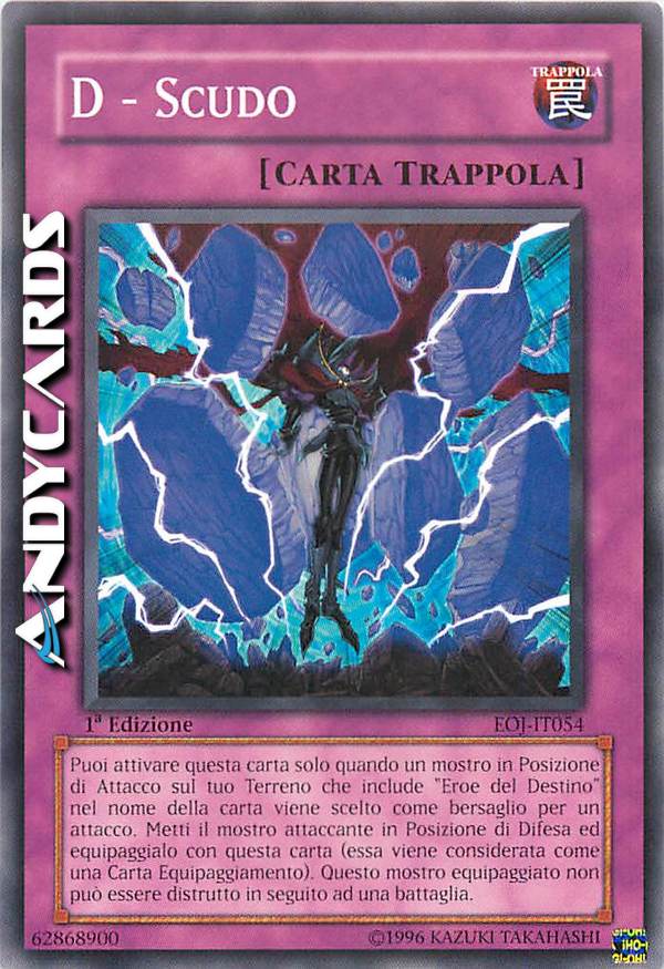 Quando un mostro "EROE del Destino" in Posizione di Attacco che controlli viene scelto come bersaglio per un attacco: sceglilo come bersaglio; mettilo in Posizione di Difesa ed equipaggialo con questa carta. Il mostro equipaggiato non può essere distrutto in battaglia.
