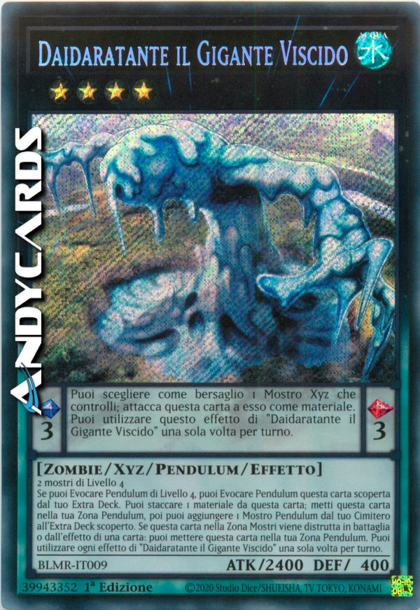 Effetto Pendulum: Puoi scegliere come bersaglio 1 Mostro Xyz che controlli; attacca questa carta a esso come materiale. Puoi utilizzare questo effetto di "Daidaratante il Gigante Viscido" una sola volta per turno.