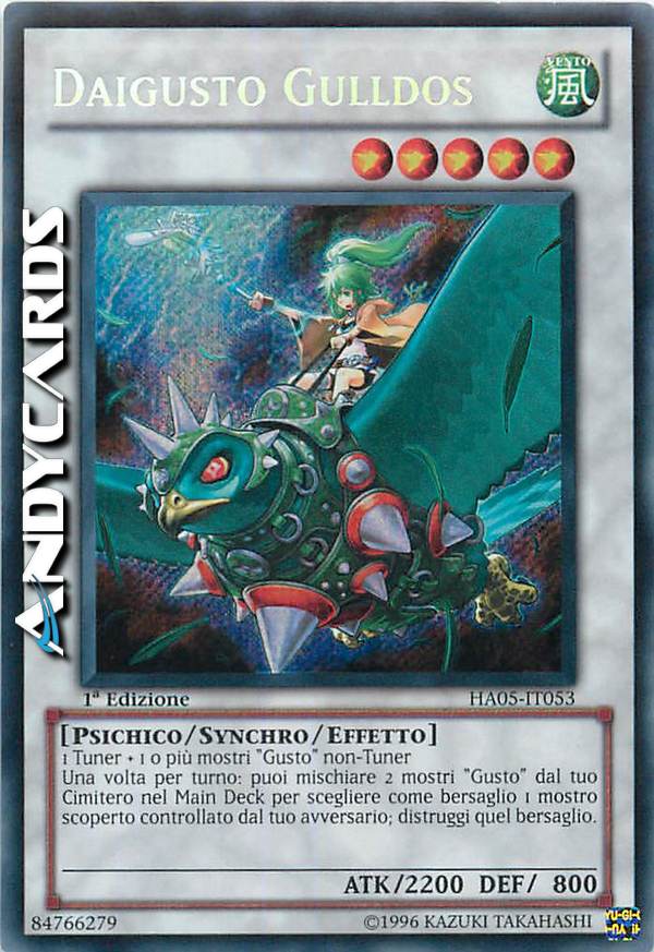 Una volta per turno: puoi mischiare 2 mostri "Gusto" dal tuo Cimitero nel Main Deck per scegliere come bersaglio 1 mostro scoperto controllato dal tuo avversario; distruggi quel bersaglio.