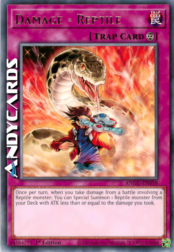 Once per turn, when you take Battle Damage from a battle involving a Reptile-Type monster, you can Special Summon 1 Reptile-Type monster from your Deck with ATK less than or equal to the Battle Damage you took.