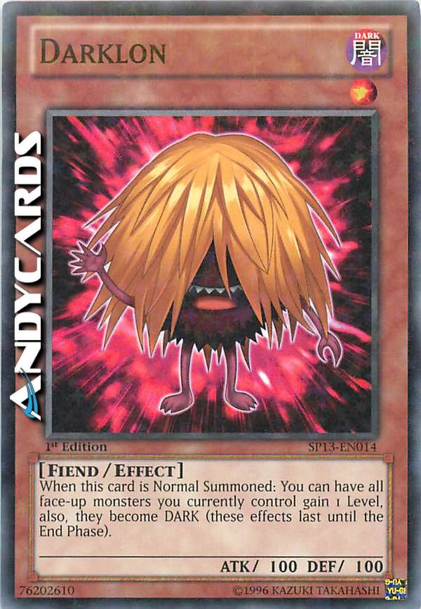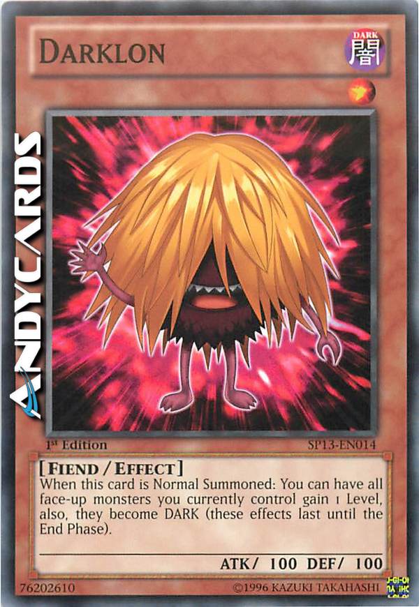 Quando questa carta viene Evocata Normalmente: puoi far guadagnare 1 Livello a tutti i mostri scoperti che controlli attualmente, inoltre essi diventano OSCURITÀ (questi effetti durano fino alla End Phase).