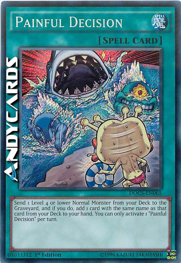 Send 1 Level 4 or lower Normal Monster from your Deck to the GY, and if you do, add 1 monster with the same name from your Deck to your hand. You can only activate 1 "Painful Decision" per turn.