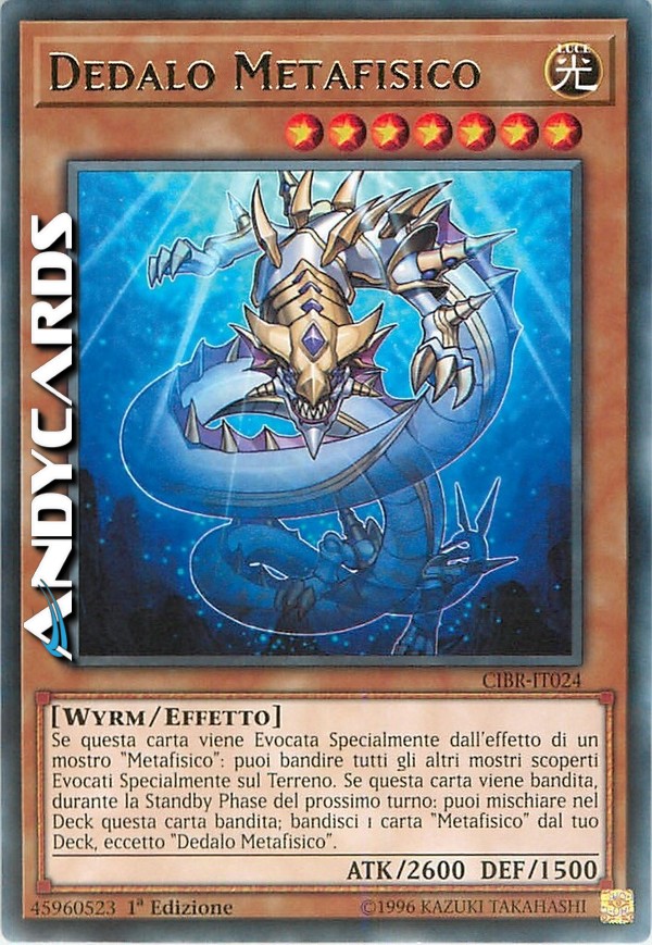 Se questa carta viene Evocata Specialmente dall'effetto di un mostro "Metafisico": puoi bandire tutti gli altri mostri scoperti Evocati Specialmente sul Terreno. Se questa carta viene bandita, durante la Standby Phase del prossimo turno: puoi mischiare nel Deck questa carta bandita; bandisci 1 carta "Metafisico" dal tuo Deck, eccetto "Dedalo Metafisico".