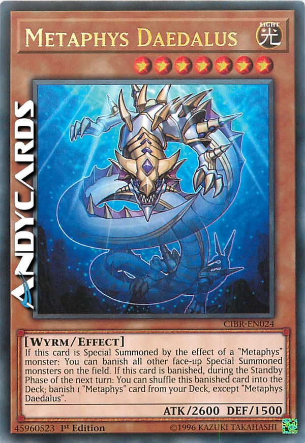 If this card is Special Summoned by the effect of a "Metaphys" monster: You can banish all other face-up Special Summoned monsters on the field. If this card is banished, during the Standby Phase of the next turn: You can shuffle this banished card into the Deck; banish 1 "Metaphys" card from your Deck, except "Metaphys Daedalus".