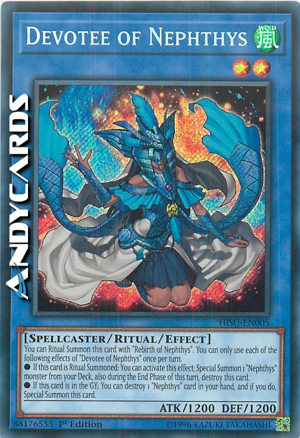 You can Ritual Summon this card with "Rebirth of Nephthys". You can only use each of the following effects of "Devotee of Nephthys" once per turn.