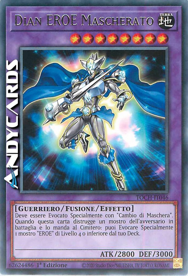 Deve essere Evocato Specialmente con "Cambio di Maschera" e non può essere Evocato Specialmente in altri modi. Quando questa carta distrugge un mostro dell'avversario in battaglia e lo manda al Cimitero: puoi Evocare Specialmente 1 mostro "EROE" di Livello 4 o inferiore dal tuo Deck.