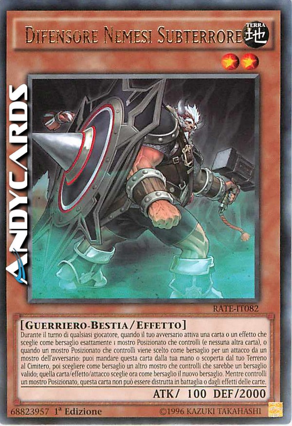 Durante il turno di qualsiasi giocatore, quando il tuo avversario attiva una carta o un effetto che sceglie come bersaglio esattamente 1 mostro Posizionato che controlli (e nessuna altra carta), o quando un mostro Posizionato che controlli viene scelto come bersaglio per un attacco da un mostro dell'avversario: puoi mandare questa carta dalla tua mano o scoperta dal tuo Terreno al Cimitero, poi scegliere come bersaglio un altro mostro che controlli che sarebbe un bersaglio valido; quella carta/effetto/attacco sceglie ora come bersaglio il nuovo bersaglio. Mentre controlli un mostro Posizionato, questa carta non può essere distrutta in battaglia o dagli effetti delle carte.