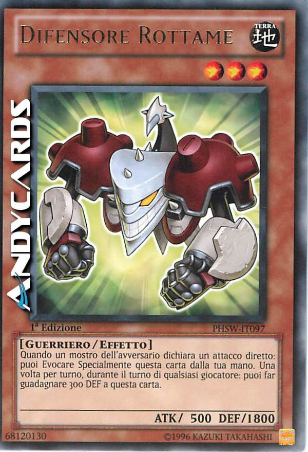 Quando un mostro dell'avversario dichiara un attacco diretto: puoi Evocare Specialmente questa carta dalla tua mano. Una volta per turno, durante il turno di qualsiasi giocatore: puoi far guadagnare 300 DEF a questa carta.