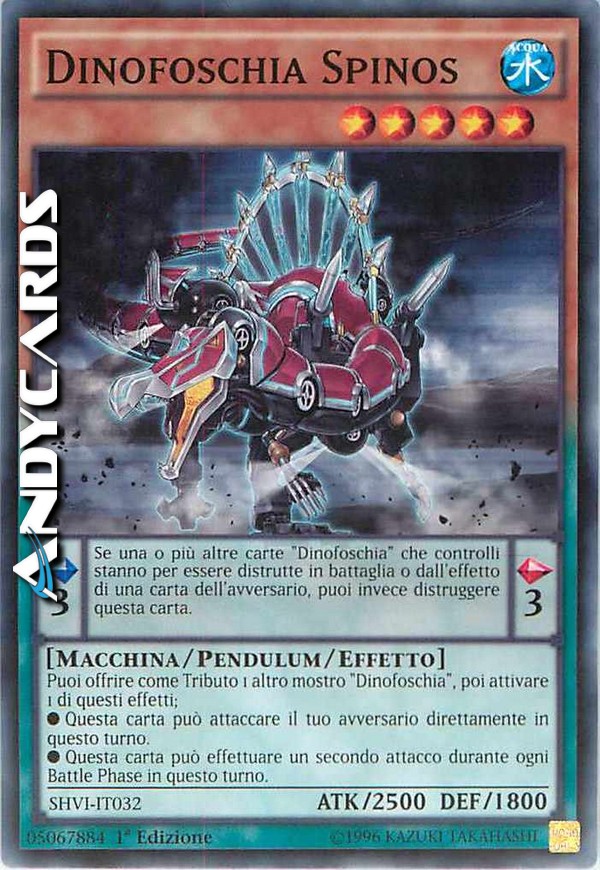 Puoi offrire come Tributo 1 altro mostro "Dinofoschia", poi attivare 1 di questi effetti; - Questa carta può attaccare il tuo avversario direttamente in questo turno. - Questa carta può effettuare un secondo attacco durante ogni Battle Phase in questo turno. - Se una o più altre carte "Dinofoschia" che controlli stanno per essere distrutte in battaglia o dall'effetto di una carta dell'avversario, puoi invece distruggere questa carta.