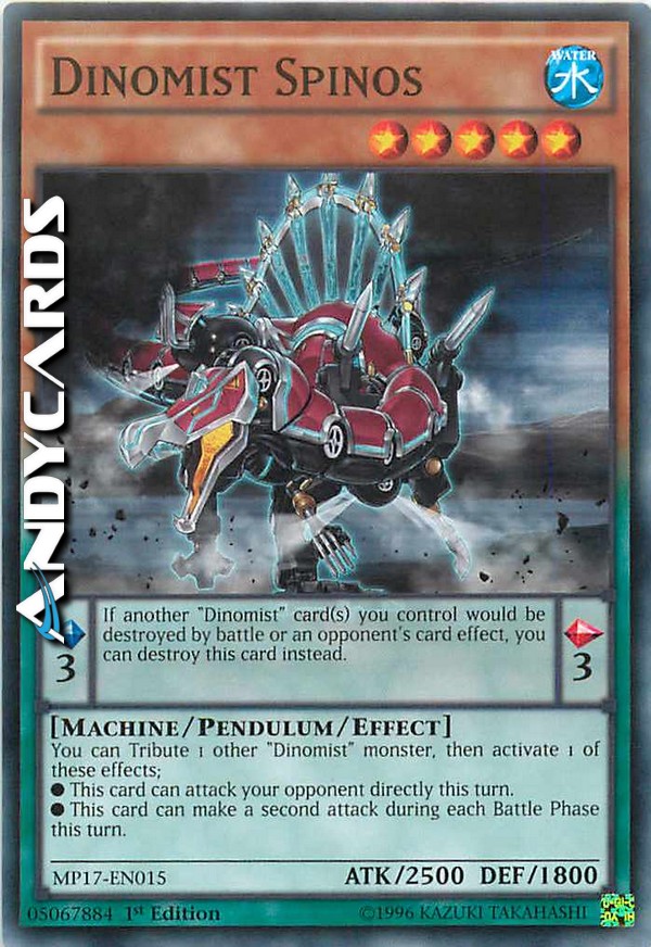 You can Tribute 1 other "Dinomist" monster, then activate 1 of these effects; - This card can attack your opponent directly this turn. - This card can make a second attack during each Battle Phase this turn. - If another "Dinomist" card(s) you control would be destroyed by battle or an opponent's card effect, you can destroy this card instead.