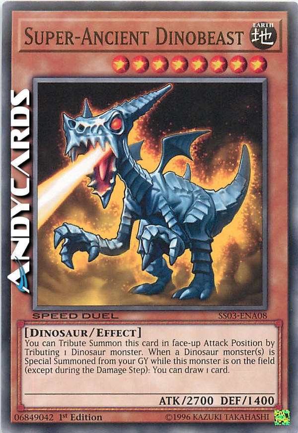 You can Tribute Summon this card in face-up Attack Position by Tributing 1 Dinosaur monster. When a Dinosaur monster(s) is Special Summoned from your GY while this monster is on the field (except during the Damage Step): You can draw 1 card.