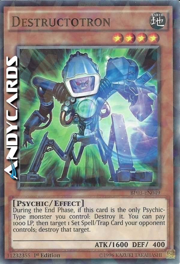 You can pay 1000 LP, then target 1 Set Spell/Trap your opponent controls; destroy that target. Once per turn, during the End Phase: Destroy this card. This card must be the only Psychic monster you control to activate and to resolve this effect.