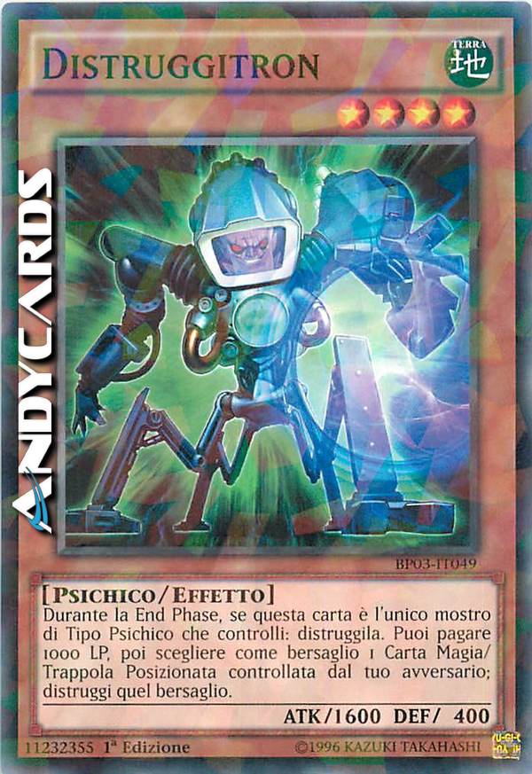 Puoi pagare 1000 LP, poi scegliere come bersaglio 1 Magia/Trappola Posizionata controllata dal tuo avversario; distruggi quel bersaglio. Una volta per turno, durante la End Phase: distruggi questa carta. Questa carta deve essere l'unico mostro Psichico che controlli per attivare e risolvere questo effetto.