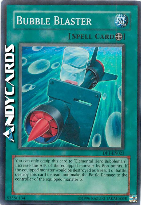 Puoi equipaggiare questa carta solo a BUBBLEMAN EROE ELEMENTALE. Aumenta l'ATK del mostro equipaggiato di 800 punti. Se il mostro equipaggiato sta per essere distrutto il seguito ad una battaglia, distruggi invece questa carta, ed il danno da combattimento al controllore del mostro equipaggiato diventa 0.