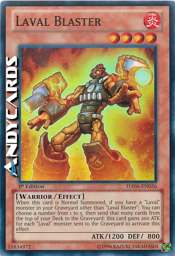 When this card is Normal Summoned, if you have a "Laval" monster in your Graveyard other than "Laval Blaster": You can choose a number from 1 to 5, then send that many cards from the top of your Deck to the Graveyard; this card gains 200 ATK for each "Laval" monster sent to the Graveyard to activate this effect.