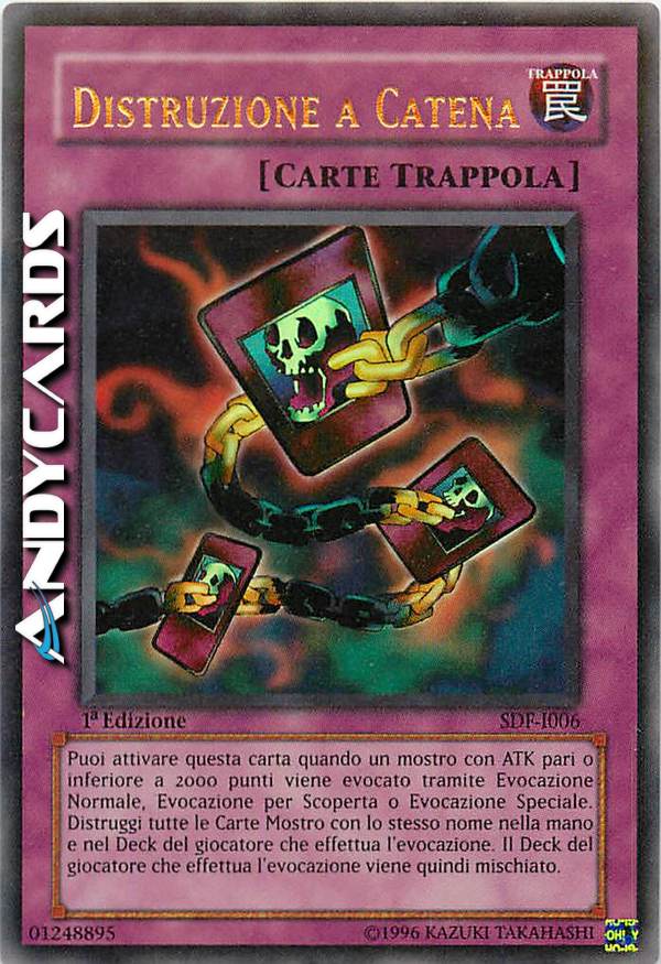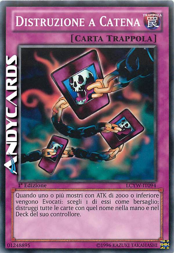 Quando uno o più mostri con ATK 2000 o inferiore vengono Evocati: scegli 1 di essi come bersaglio; distruggi tutte le carte con quel nome nella mano e nel Main Deck del suo controllore.