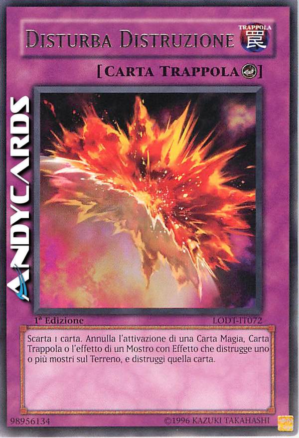 Scarta 1 carta. Annulla l'attivazione di una Carta Magia, Carta Trappola o l'effetto di un Mostro con Effetto che distrugge uno o più mostri sul Terreno, e distruggi quella carta.