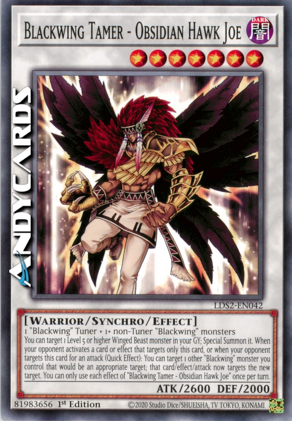 You can target 1 Level 5 or higher Winged Beast-Type monster in your Graveyard; Special Summon it. During either player's turn, when your opponent targets exactly this card (and no other cards) for an attack, or with a card effect: You can target 1 other "Blackwing" monster you control that would be an appropriate target; that attack/effect now targets the new target. You can only use each effect of "Blackwing Tamer - Obsidian Hawk Joe" once per turn.