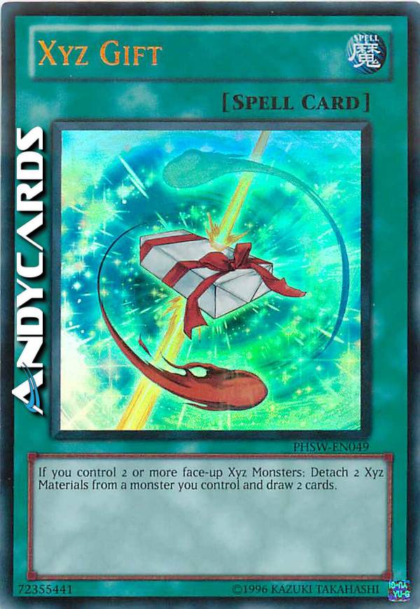 Se controlli 2 o più Mostri Xyz scoperti: stacca 2 Materiali Xyz da un mostro che controlli e pesca 2 carte.