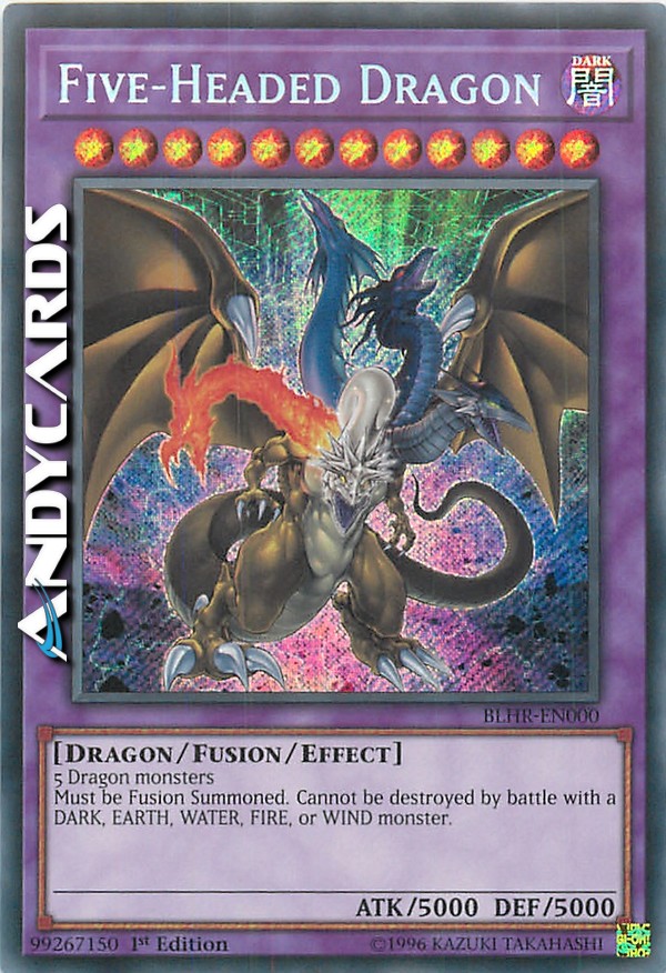 5 mostri di Tipo Drago Deve essere Evocato tramite Fusione, e non può essere Evocato Specialmente in altri modi. Questa carta non può essere distrutta in battaglia con un mostro OSCURITÀ, TERRA, ACQUA, FUOCO o VENTO.