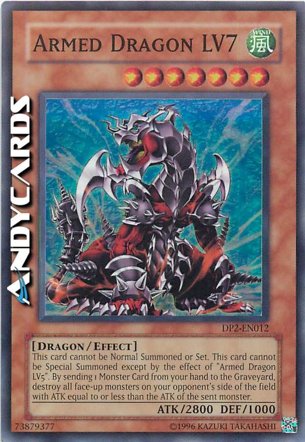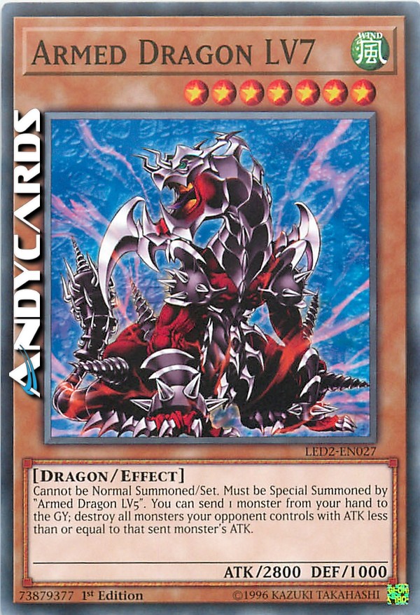 Cannot be Normal Summoned/Set. Must be Special Summoned by "Armed Dragon LV5". You can send 1 monster from your hand to the GY; destroy all monsters your opponent controls with ATK less than or equal to that sent monster's ATK.