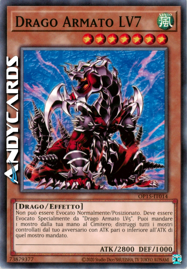 Questa carta non può essere evocata tramite evocazione normale o posizionata. Questa carta non può essere evocata tramite Evocazione Speciale, se non per effetto di drago armato LV5. Manda una carta mostro dalla tua mano al cimitero per distruggere tutti i mostri scoperti sul terreno del tuo avversario con ATK pari o inferiore all'ATK del mostro mandato al cimitero.