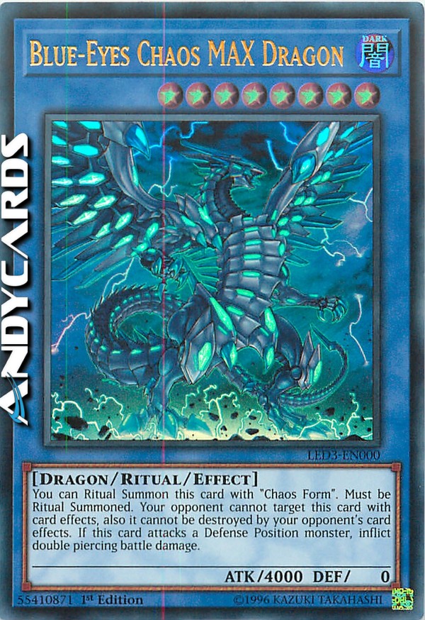 You can Ritual Summon this card with "Chaos Form". Must be Ritual Summoned. Your opponent cannot target this card with card effects, also it cannot be destroyed by your opponent's card effects. If this card attacks a Defense Position monster, inflict double piercing battle damage.