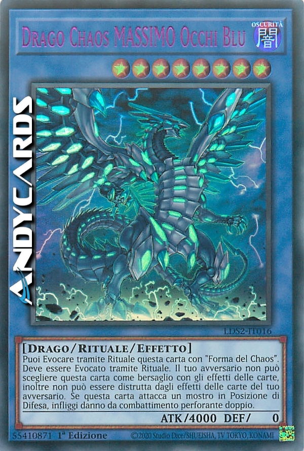 Puoi Evocare tramite Rituale questa carta con "Forma del Chaos". Deve essere Evocato tramite Rituale. Il tuo avversario non può scegliere questa carta come bersaglio con gli effetti delle carte, inoltre essa non può essere distrutta dagli effetti delle carte del tuo avversario. Se questa carta attacca un mostro in Posizione di Difesa, infliggi danno da combattimento perforante doppio al tuo avversario.