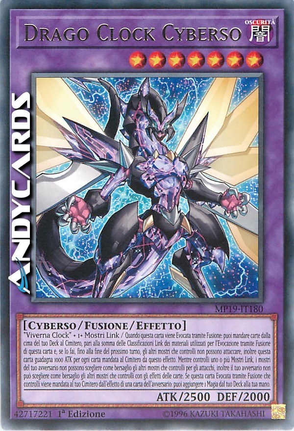 Quando questa carta viene Evocata tramite Fusione: puoi mandare carte dalla cima del tuo Deck al Cimitero, pari alla somma delle Classificazioni Link dei materiali utilizzati per l'Evocazione tramite Fusione di questa carta e, se lo fai, fino alla fine del prossimo turno, gli altri mostri che controlli non possono attaccare, inoltre questa carta guadagna 1000 ATK per ogni carta mandata al Cimitero da questo effetto. Mentre controlli uno o più Mostri Link, i mostri del tuo avversario non possono scegliere come bersaglio gli altri mostri che controlli per gli attacchi, inoltre il tuo avversario non può scegliere come bersaglio gli altri mostri che controlli con gli effetti delle carte. Se questa carta Evocata tramite Fusione che controlli viene mandata al tuo Cimitero dall'effetto di una carta dell'avversario: puoi aggiungere 1 Magia dal tuo Deck alla tua mano.